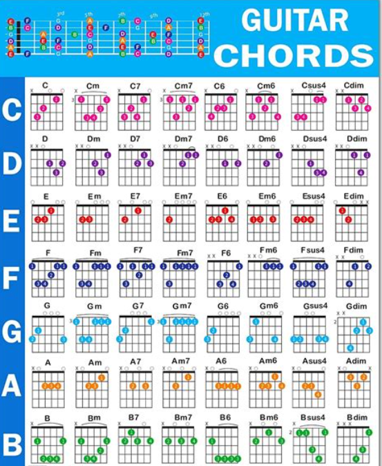 - 가장 많이 쓰이는 코드: C, D, G, A, E, Em, Am, Dm